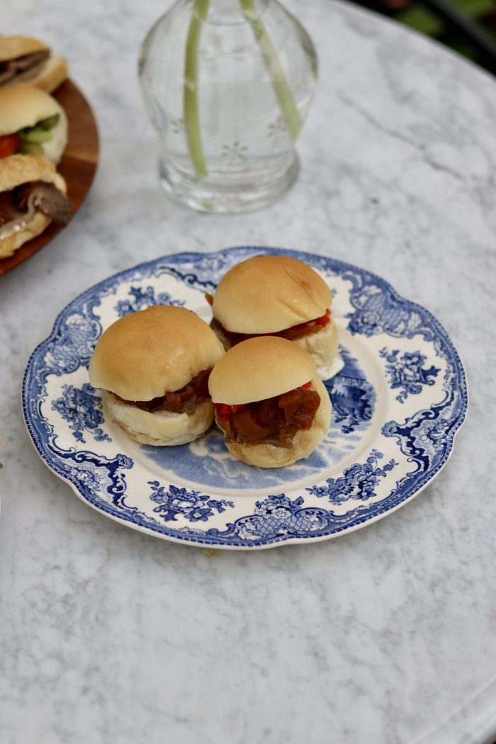 Tap Churrasco Cebolla Caramelizada Pimenton Pan Redondo